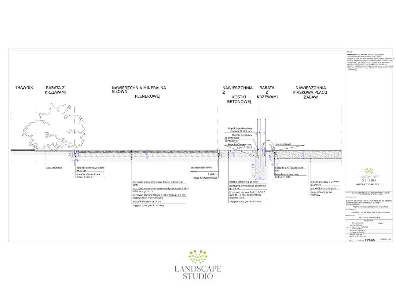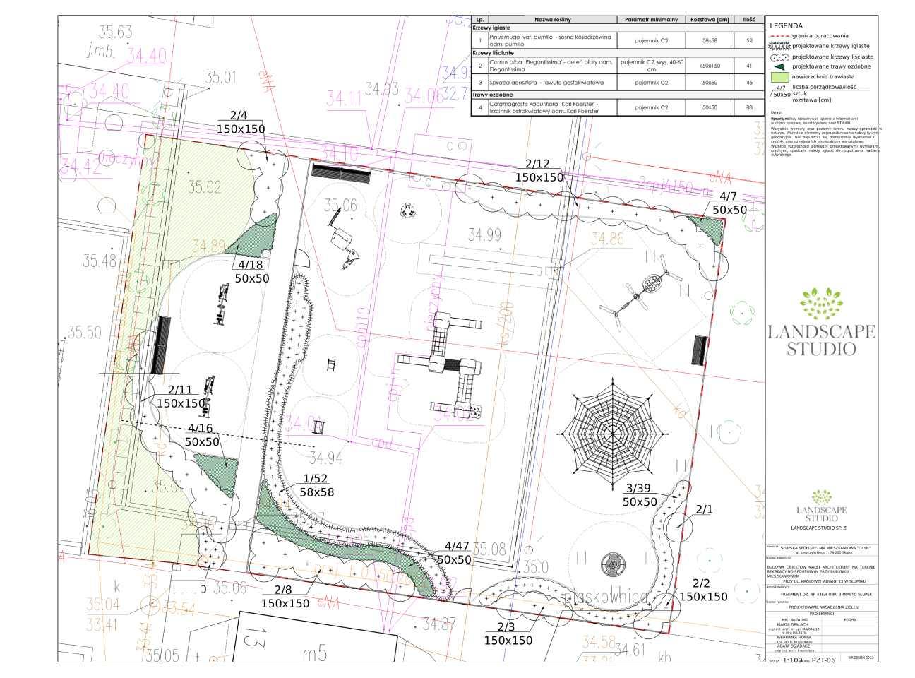 Projekt zagospodarowania terenu przy ul. Królowej Jadwigi 13 w Słupsku przekształcił dawny teren boiska w nowoczesną przestrzeń rekreacyjno-sportową. Powstały dwie strefy – plac zabaw z bezpieczną nawierzchnią, zestawami zabawowymi, huśtawkami i tablicami do rysowania oraz siłownia plenerowa z urządzeniami fitness. Teren zyskał nowe ogrodzenie, ławki, kosze na śmieci i zielone nasadzenia.